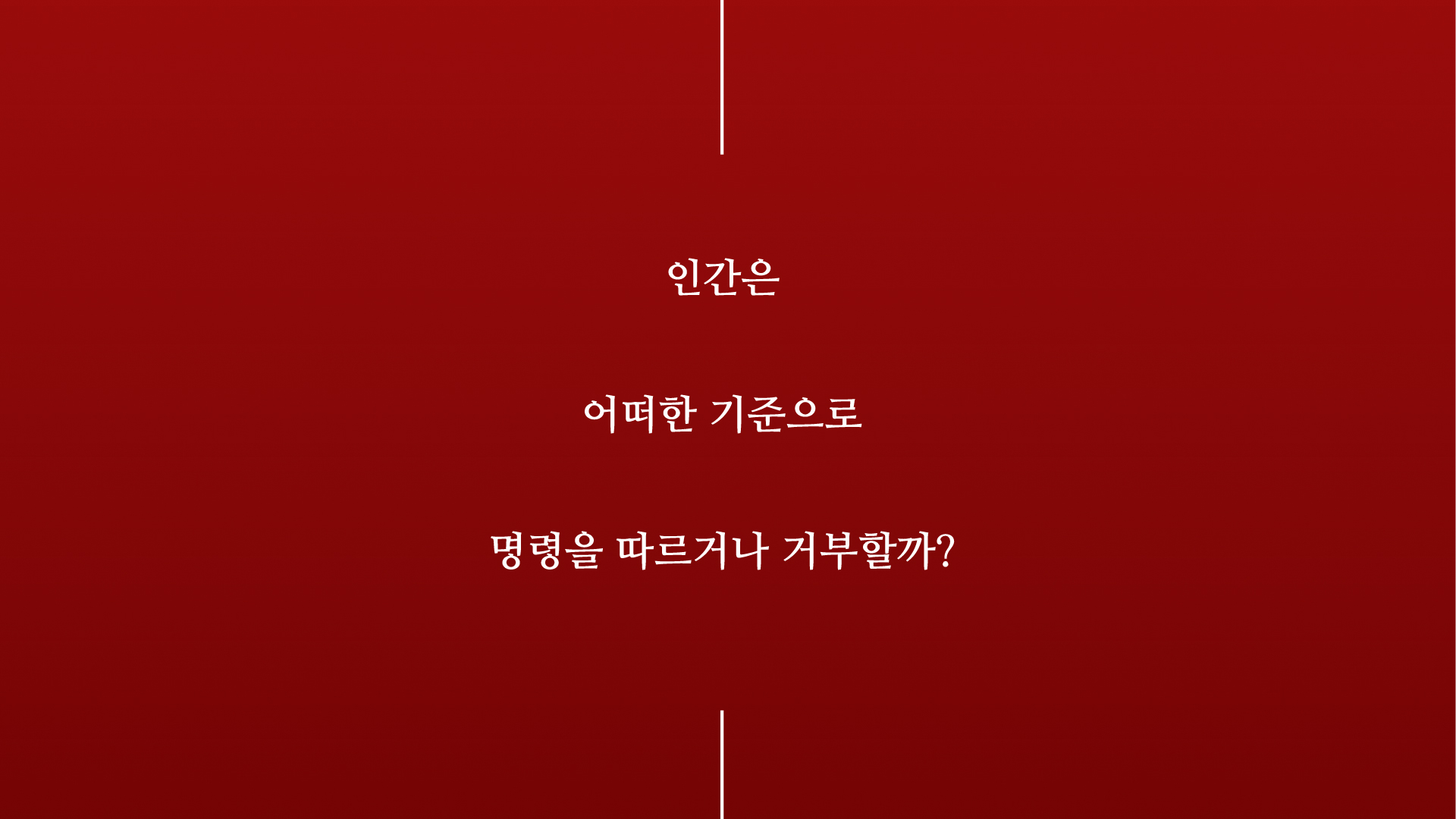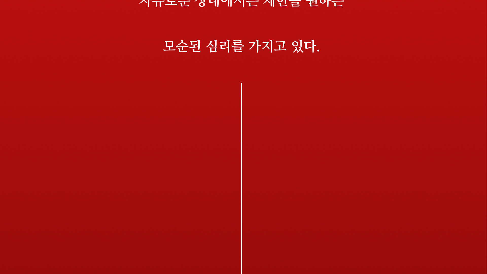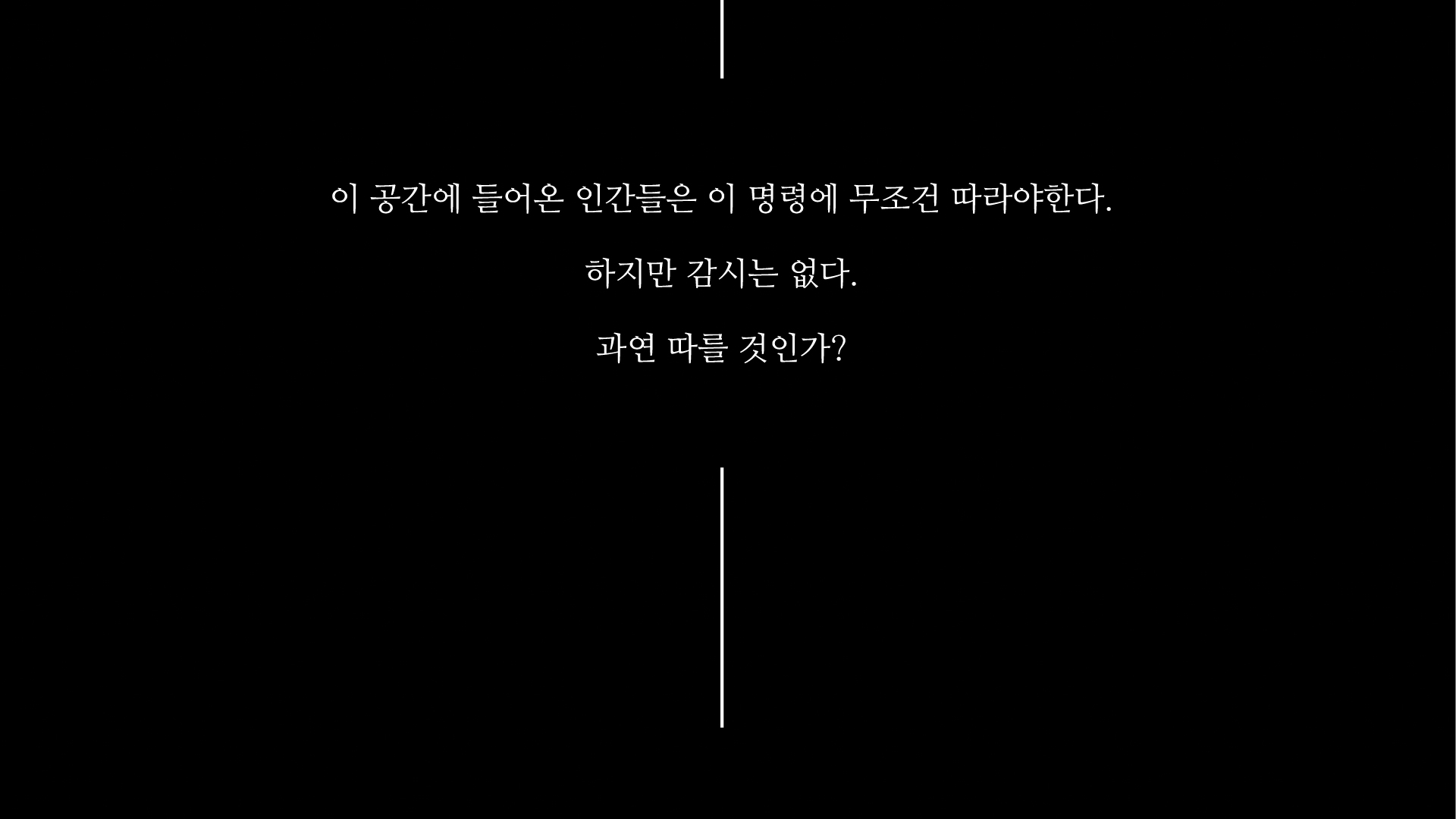 “WHY NOT ?”은 인간의 반대 심리를 실험하기 위해 설계되었다. 이 공간에서는 [ 벽을 밀다가 사람을 마주치면 그 자리에서 누워 자야 하고, 잠든 사람을 보면 깨워야 한다. ]는 명령을 반드시 따라야 한다. 감시는 없으며, 인간들은 매 순간 선택을 한다. 그 선택은 수백, 수만 가지 결과로 이어지며, 결국 각자의 본능과 마주하게 된다.
