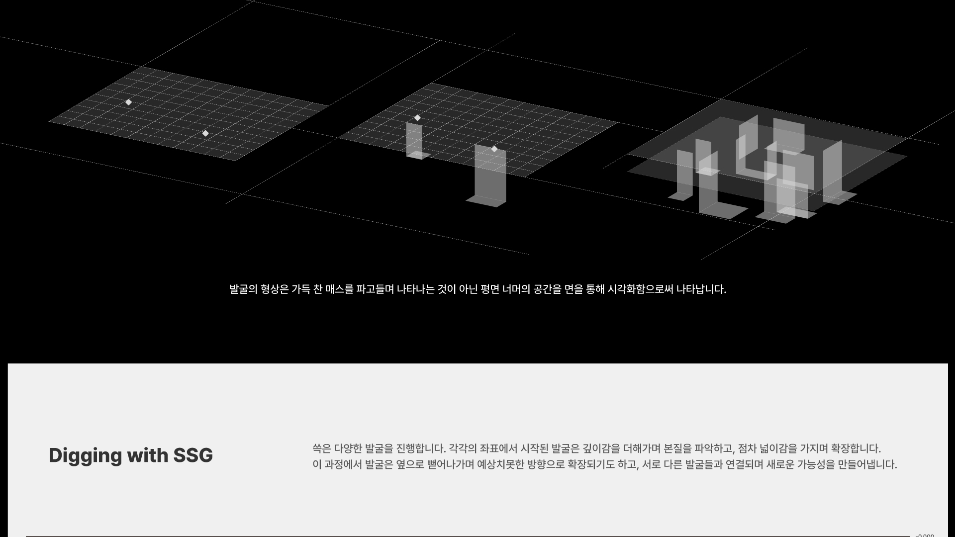쓱의 가치를 전달하는 큐레이션 공간으로, 빠르게 흘러가고 변화하는 삶 속에서 우리가 놓치고 있던 느림을 ‘발굴’이라는 여정을 통해 경험하게 합니다. 고객을 향한 쓱의 진정성과 노력을 담은 느린 여정을 따라가며 쓱이 추구하는 깊이있는 가치를 느낄 수 있습니다.