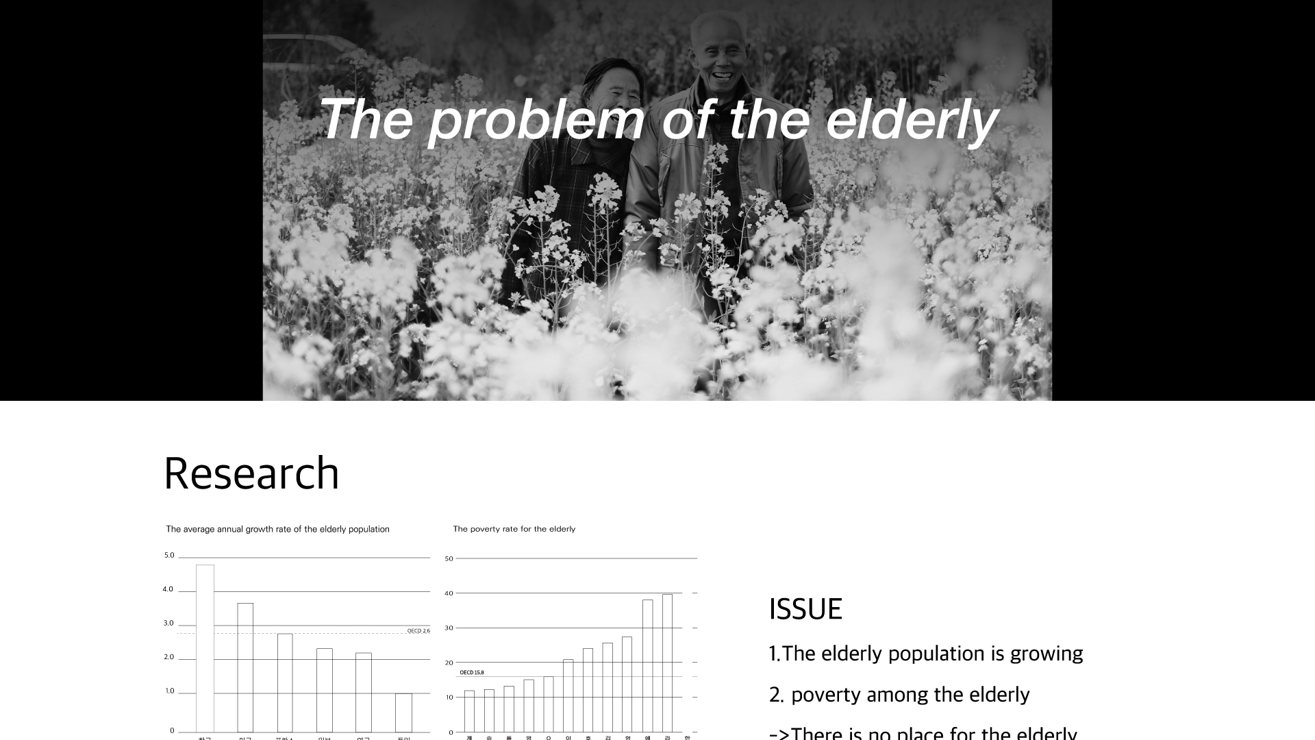 The elderly group often experiences economic difficulties and psychological isolation due to disconnection from other generations. To solve this problem, a ‘connection’ that can promote intergenerational connections is needed. This connection provides opportunities for the elderly to interact and at the same time plays an important role in narrowing the gap between generations. This connecting again becomes a facility that connects generations and a space that plays a role in narrowing the rapidly widening gap between generations.