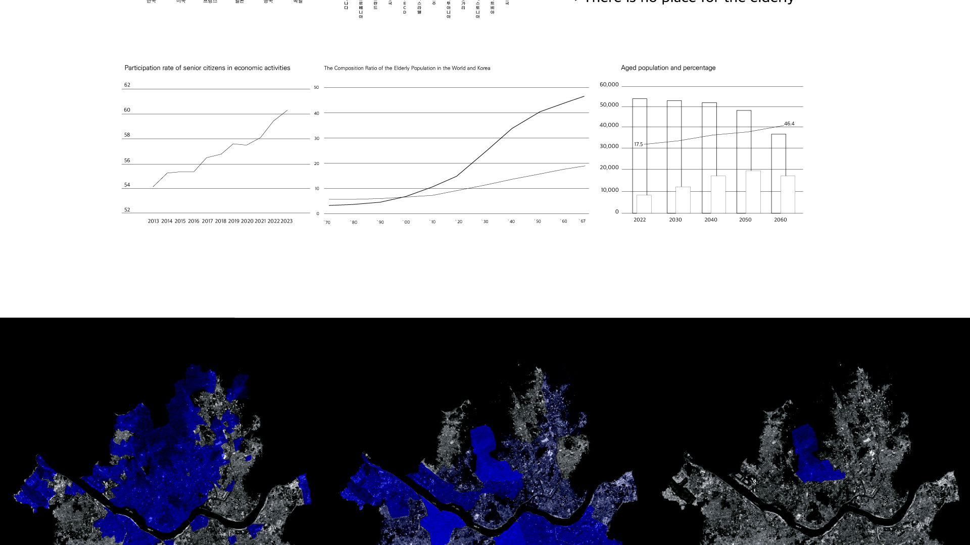 노인 집단은 다른 세대와의 단절로 인해 경제적 어려움과 심리적 고립을 경험하는 경우가 많다. 이러한 문제를 해결하기 위해서는 세대 간의 연결을 촉진할 수 있는 ‘연결고리’가 필요하다. 이 연결고리는 노인들이 상호작용할 수 있는 기회를 제공함과 동시에 세대 간의 격차를 줄이는 데 중요한 역할을 한다. 이 Connecting은 다시금 세대를 연결짓는 시설이자, 빠르게 벌어지는 세대 간 격차를 줄여주는 역할을 수행하는 공간으로 자리잡는다.