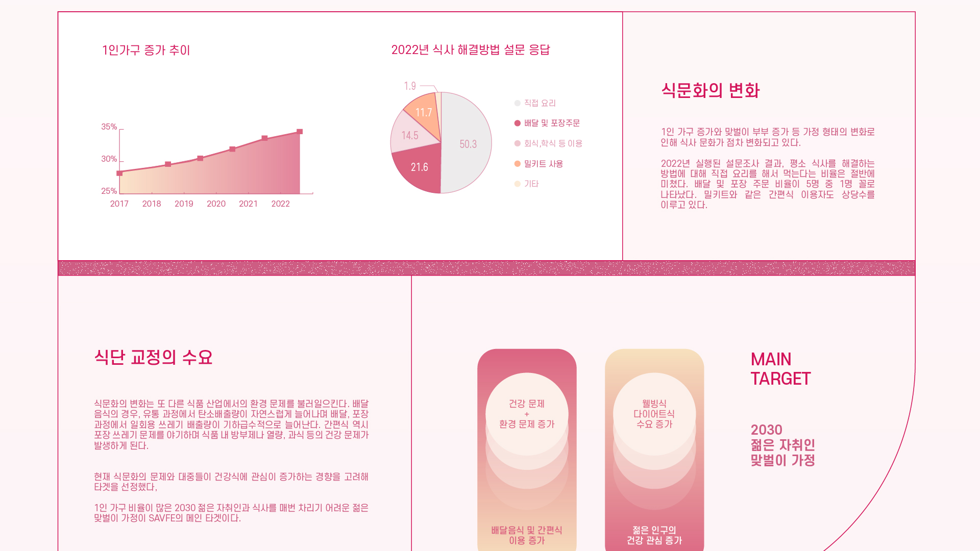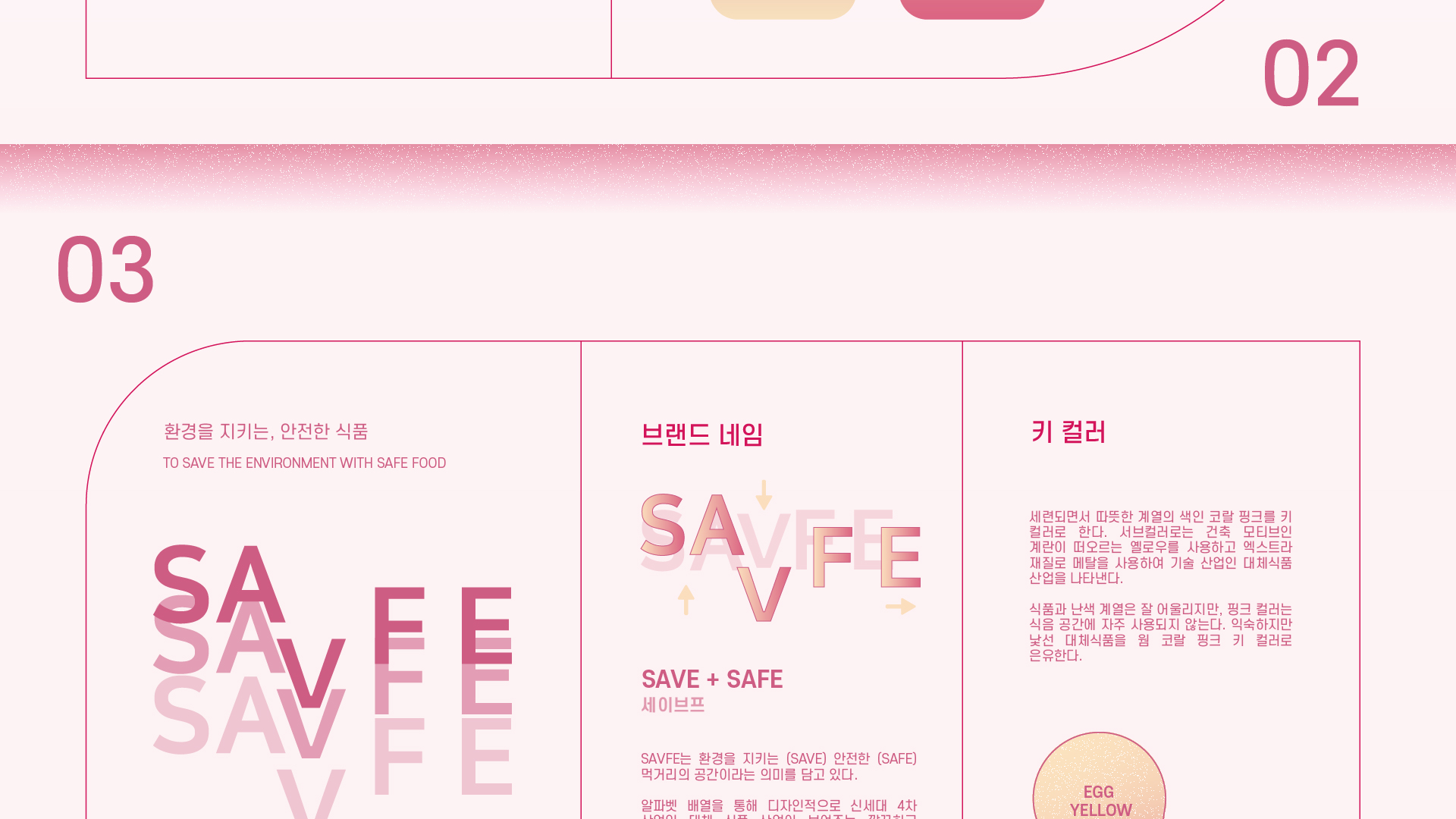SAVFE는 대체 식품을 친숙하게 인식시키고 노출하는 공간이다. 환경을 구하고 (SAVE) 안전한 (SAFE) 먹거리의 공간으로 대체 식품의 생산부터 조리까지 전 과정을 경험할 수 있다. SAVFE는 푸드 컨설팅 콘텐츠를 포함하여 이용자의 생활 스타일 변화까지 이어진다. 핑크의 키 컬러를 이용해 공간을 구성하여 따듯하지만 식음 공간에서는 자주 사용되지 않은 컬러를 통해 새로운 푸드 컬쳐 스페이스 트렌드를 제시한다.